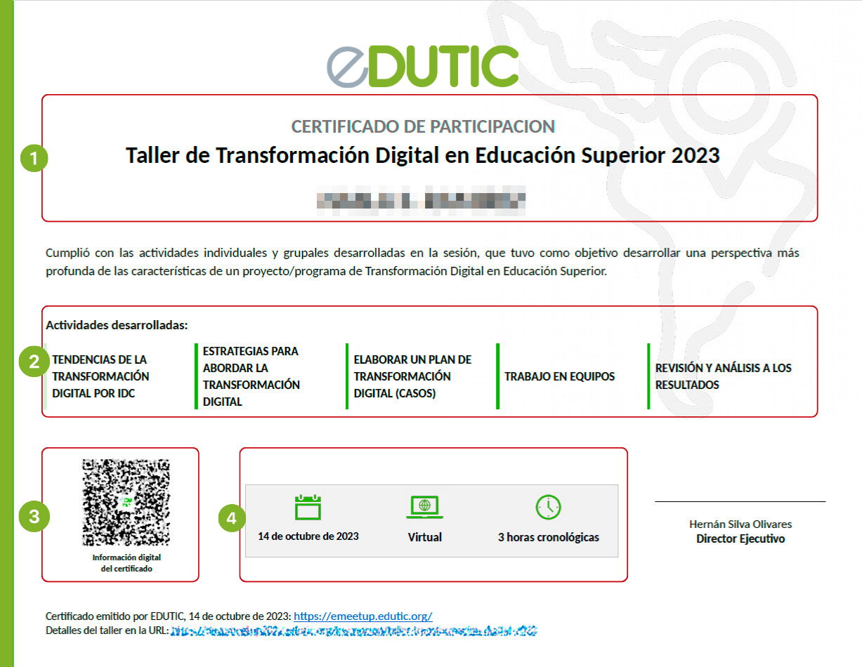 Se incluye el nombre del taller, nombres y apellidos de la persona